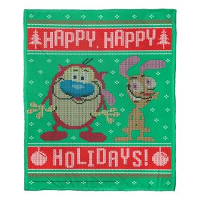 Ren and Stimpy; Happy Happy Holidays Aggretsuko Comics Silk Touch Throw Blanket; 50" x 60"